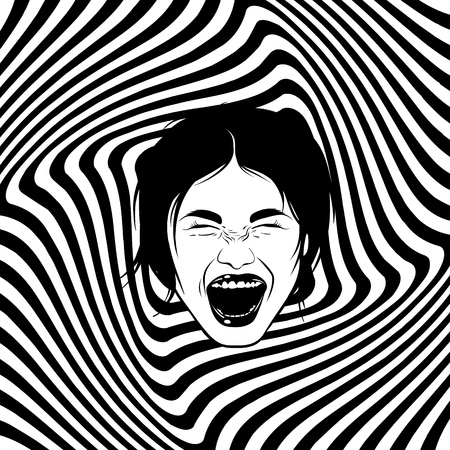 クローズアップフェイスポップアートの女性は怒りを叫ぶ 漫画漫画 レトロベクトルイラスト描画 のイラスト素材 ベクタ Image